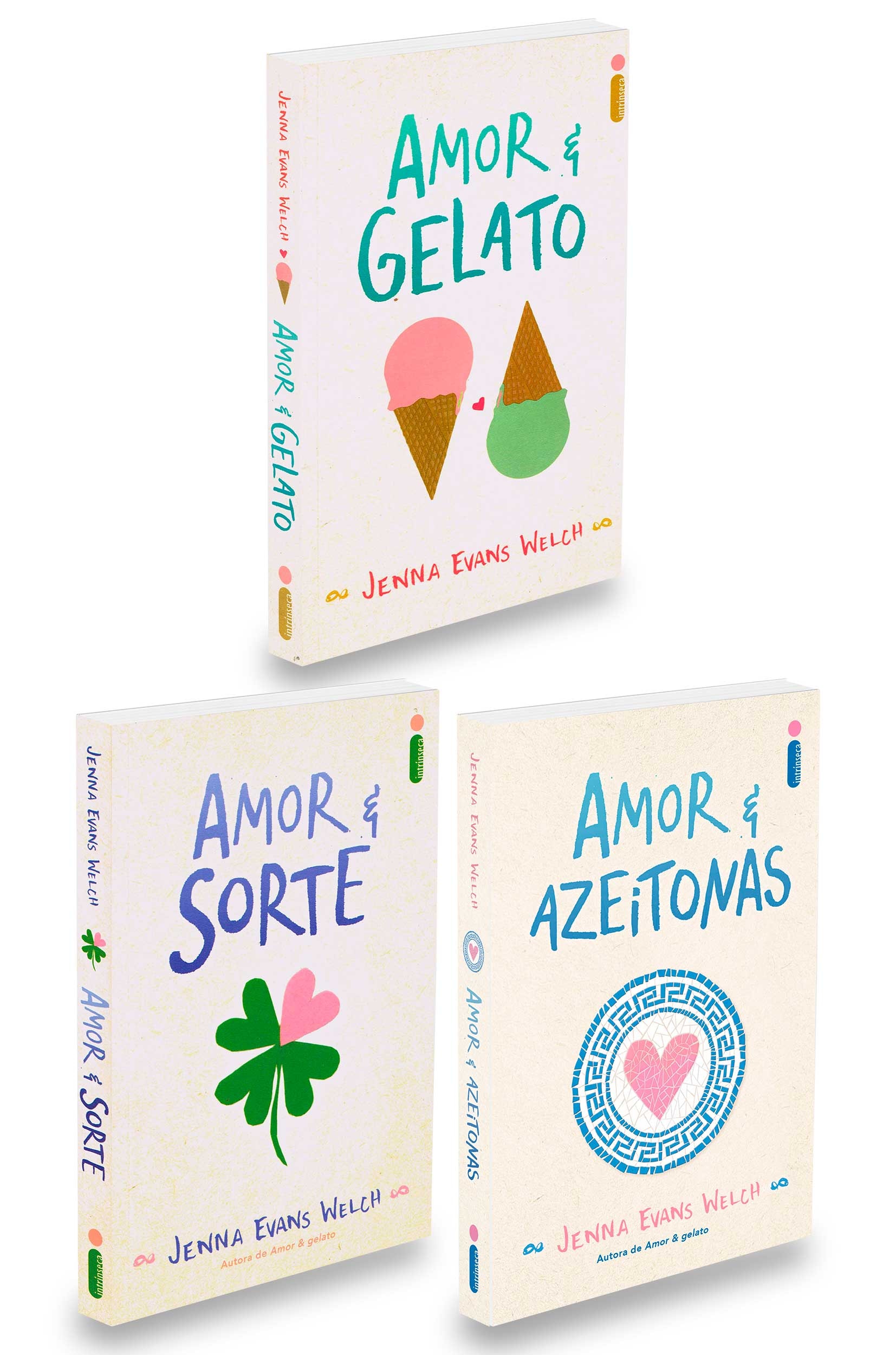 LIVROS NOVOS E FÍSICOS Este Kit Contém 1 exemplar de cada: AMOR & GELATO - 320 páginas -14x21 cm - (Autor: Jenna Evans Welch) AMOR & SORTE - 272 páginas -14x21 cm - (Autor: Jenna Evans Welch) AMOR & AZEITONA - 448 páginas -14x21 cm - (Autor: Jenna Evans Welch)